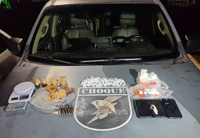 Coxim (MS) — A Polícia Militar prendeu um casal por tráfico de drogas e porte ilegal de arma na noite de domingo (19), em ação realizada pelo Batalhão de Choque do MS (BPChoque).