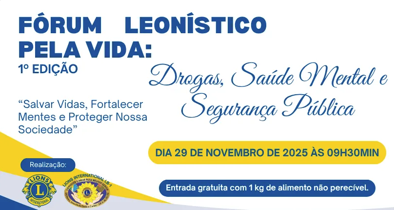 Organizado por membros do Lions Clube Internacional LB-1, o fórum busca uma abordagem técnica e humanizada, que envolva diversas áreas do conhecimento, e fomente a reflexão sobre as políticas de prevenção e tratamento. O evento contará com a participação de profissionais da saúde, segurança, educação, assistência social, além de estudantes e representantes de clínicas terapêuticas.