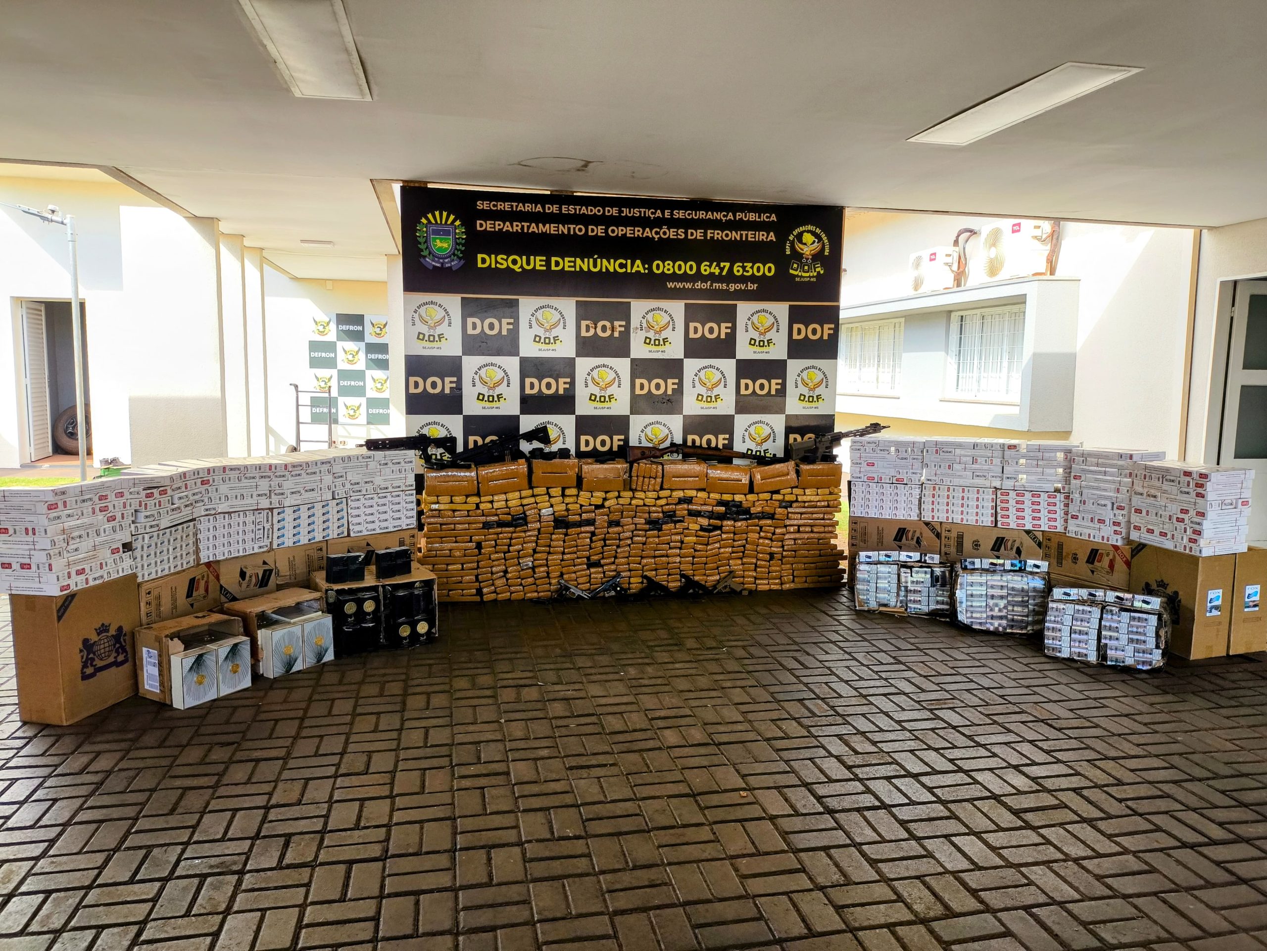 Na quinta-feira (24), a equipe do Departamento de Operações de Fronteira (DOF) realizou uma grande apreensão em Ponta Porã, que resultou na captura de quatro veículos repletos de mercadorias ilícitas. Entre os itens confiscados estavam drogas, cigarretes, pneus de origem estrangeira, cigarros eletrônicos, perfumes e armas de airsoft. Este episódio marca a terceira interceptação de comboios com substâncias ilegais e contrabando em menos de um mês.