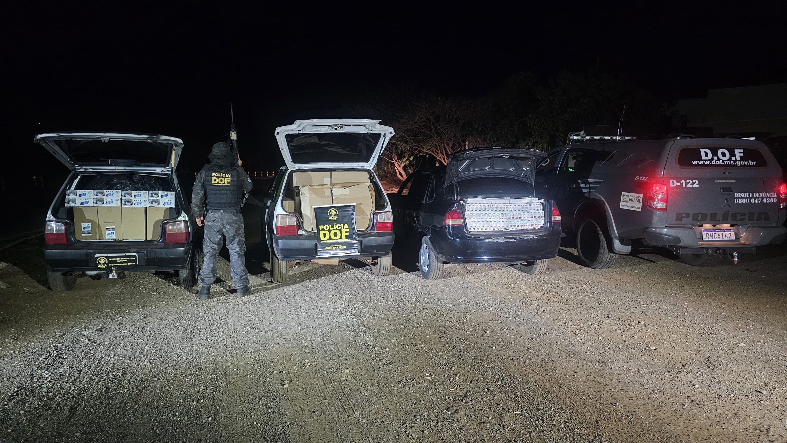 Na quarta-feira, dia 10, policiais do Departamento de Operações de Fronteira (DOF) realizaram a apreensão de três veículos carregados com mercadorias e cigarros contrabandeados do Paraguai na cidade de Maracaju. Durante a ação, quatro homens, com idades variando entre 25 e 47 anos, foram detidos.
