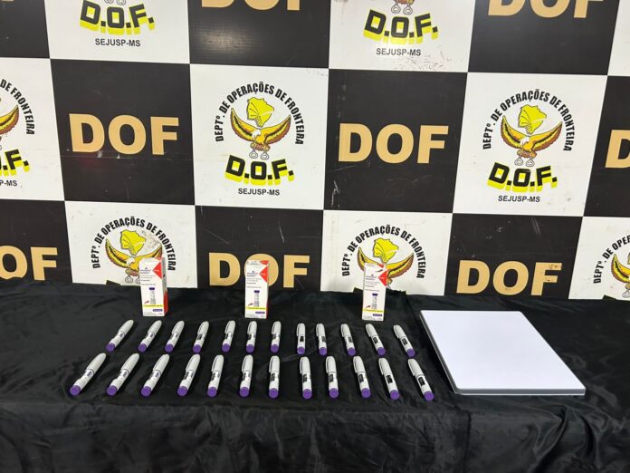 Na quinta-feira (26), em Ponta Porã, policiais do Departamento de Operações de Fronteira (DOF) realizaram a apreensão de um veículo VW T-Cross que transportava 24 canetas de Mounjaro, resultando na prisão de um homem de 27 anos sob acusação de contrabando.