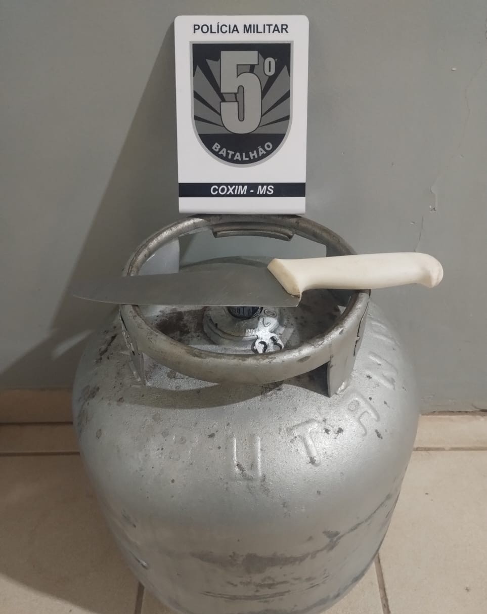 Os dois homens foram detidos e encaminhados à Delegacia de Polícia Civil, juntamente com o botijão de gás e a faca apreendida.