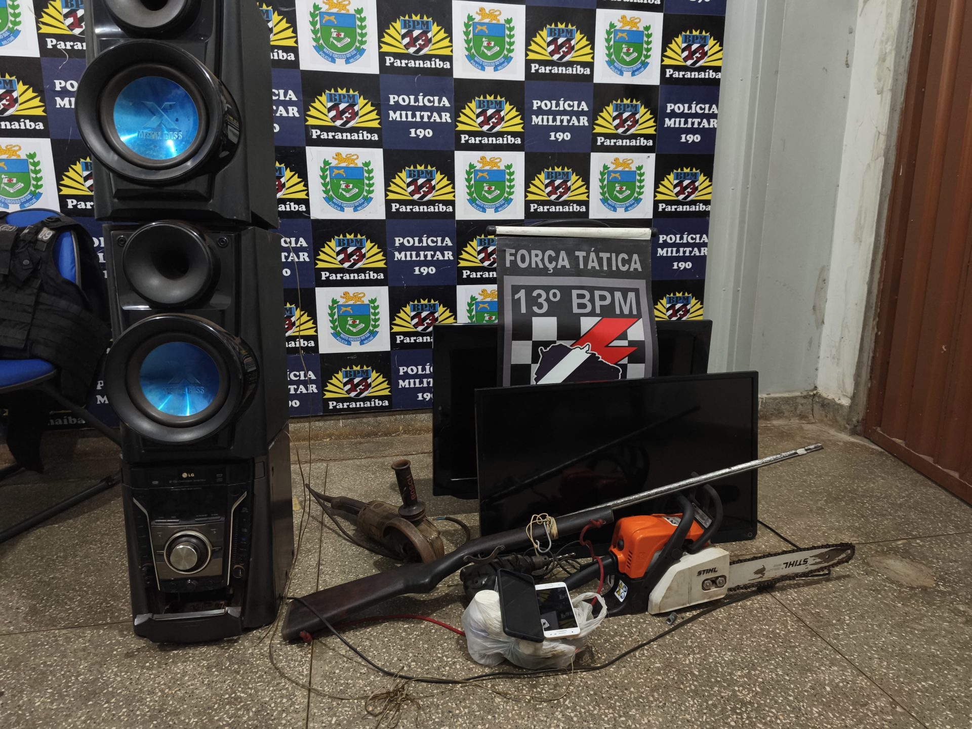 O suspeito mencionou que outros produtos furtados estariam na posse de um receptador conhecido. Uma ação conjunta com a Polícia Civil levou os investigadores até uma residência na Avenida Paraná. A filha do suspeito permitiu a entrada da equipe, que encontrou e apreendeu os seguintes itens: