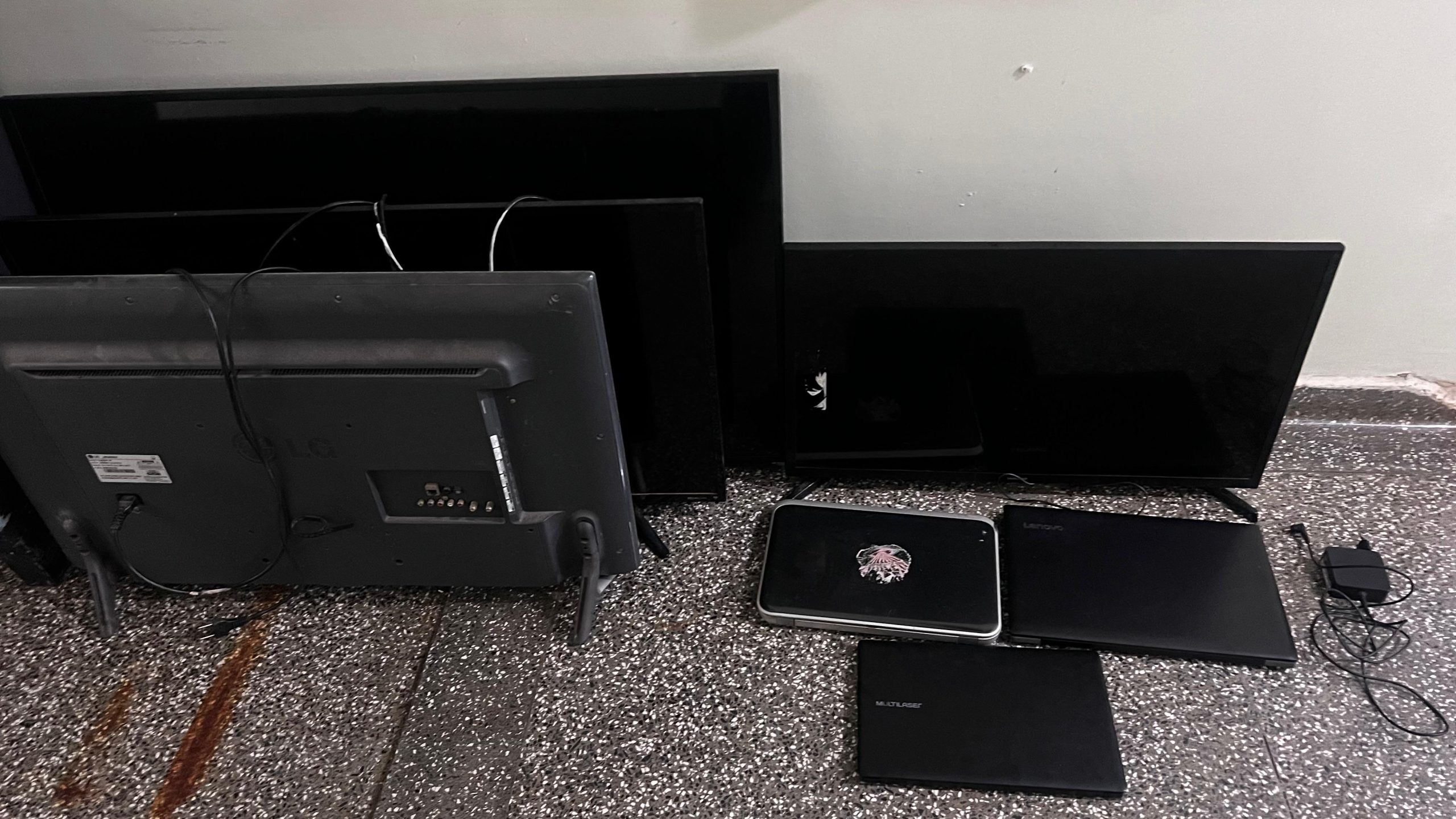 Além dos objetos relacionados ao furto, os policiais apreenderam cerca de 5 quilos de fios de cobre queimados, um hidrômetro de uma concessionária pública e diversos eletrônicos sem comprovação de origem lícita.