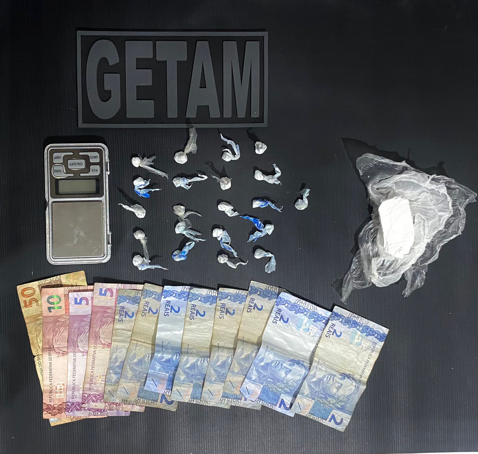 Os policiais também localizaram em posse do homem uma quantia em dinheiro, que, segundo registro da ocorrência, seria proveniente da venda da droga. Em busca domiciliar, foram apreendidos 36,4 gramas de cocaína e uma balança de precisão.