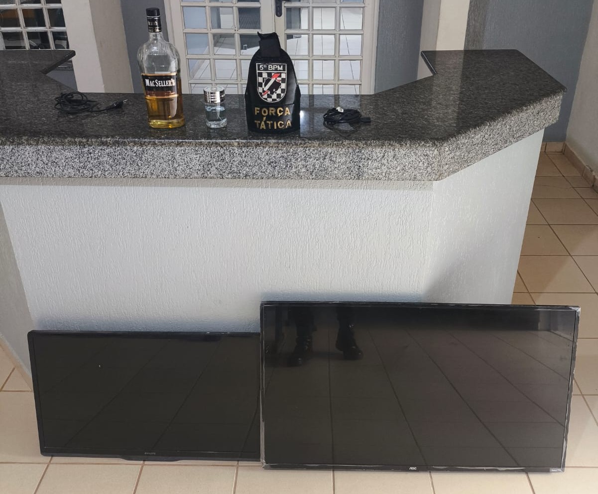 Foram recuperadas duas televisões — uma de aproximadamente 30 polegadas e outra de 50 polegadas — além de um perfume, carne e uma garrafa de whisky. Os produtos estavam separados no local, caracterizando tentativa de ocultação.
