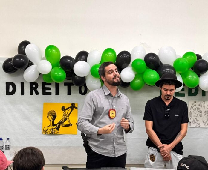 A Polícia Civil, por meio da Delegacia de Brasilândia, realizou na manhã desta sexta-feira (17) uma palestra voltada a estudantes do ensino médio da Escola Estadual Adilson Alves. O evento foi promovido a convite da unidade escolar e teve como objetivo estreitar laços com a comunidade escolar e esclarecer o trabalho policial.