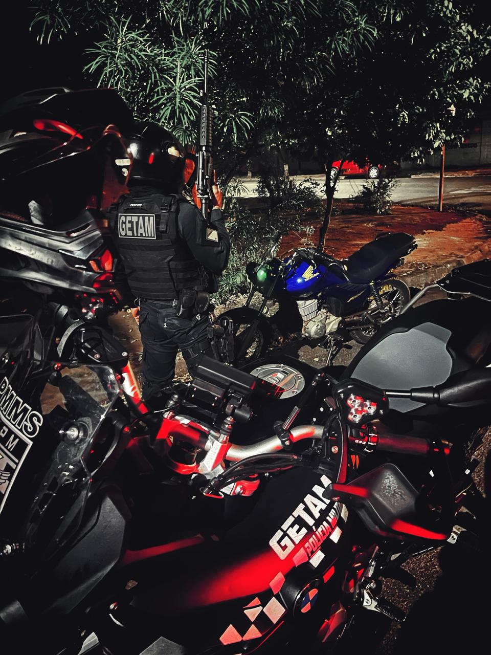 Por volta das 23h35, policiais receberam denúncias sobre um motociclista realizando manobras arriscadas na rua Elvirio Mario Mancini. Em resposta, as equipes intensificaram as rondas na área indicada e localizaram o indivíduo, que não obedeceu à ordem de parada. Durante a perseguição, o condutor trafegou por canteiros centrais, calçadas e pela contramão, comprometendo a segurança de pedestres e outros motoristas.