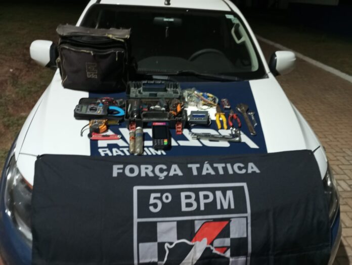 A bolsa estava deixada na calçada e continha várias ferramentas e uma máquina de cartão, entre outros itens. A presença dos objetos sem ninguém por perto chamou a atenção dos policiais. Uma testemunha que passava pelo local, ao ser abordada, informou não saber a quem pertenciam os itens.