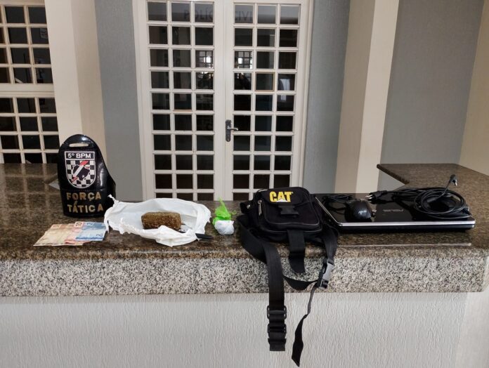 Coxim (MS) — A Polícia Militar, por meio da Força Tática do 5º Batalhão, prendeu em flagrante um jovem de 19 anos por tráfico de drogas na tarde deste sábado (3). A ação ocorreu por volta das 12h durante patrulhamento preventivo na Rua Fortaleza, no Conjunto Residencial Taquari.