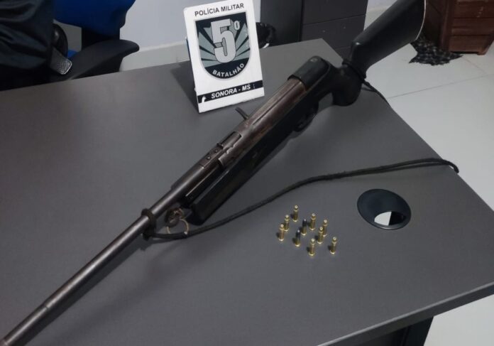 Em Sonora, por volta das 20h, durante um deslocamento para a cidade, a equipe policial recebeu informações sobre um homem caçando nas margens de uma rodovia. Em resposta, os policiais se dirigiram a uma chácara próximo à localidade, contando com o apoio da guarnição local. No local, um homem de 58 anos foi encontrado portando uma espingarda artesanal adaptada para calibre .22, além de uma munição. Durante a busca na residência do indivíduo, foram encontradas mais nove munições do mesmo calibre. O homem foi detido e encaminhado à Delegacia de Polícia Civil.
