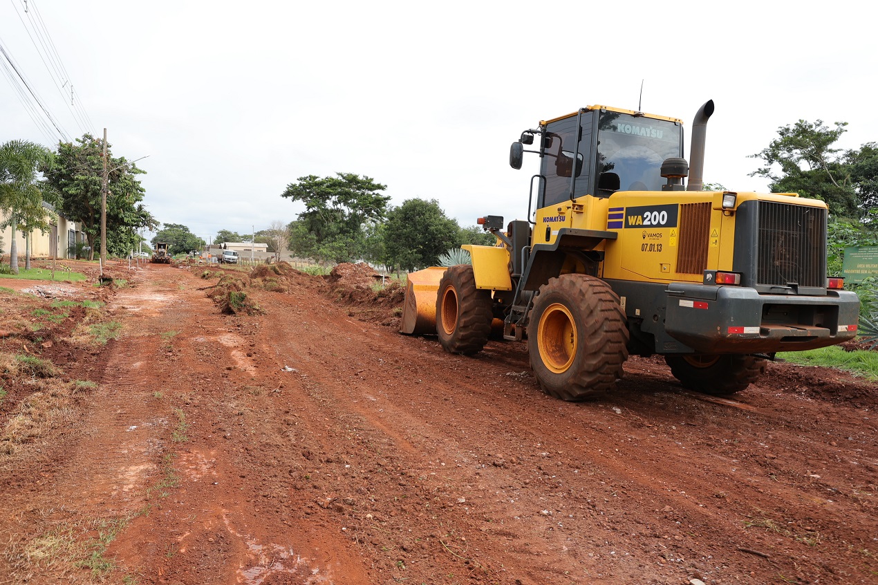 Paralelamente, máquinas já executam pavimentação nas ruas Olívio Waldemar Beker e Ramão Gomes de Matos, na parte final do bairro, ampliando a infraestrutura urbana local.