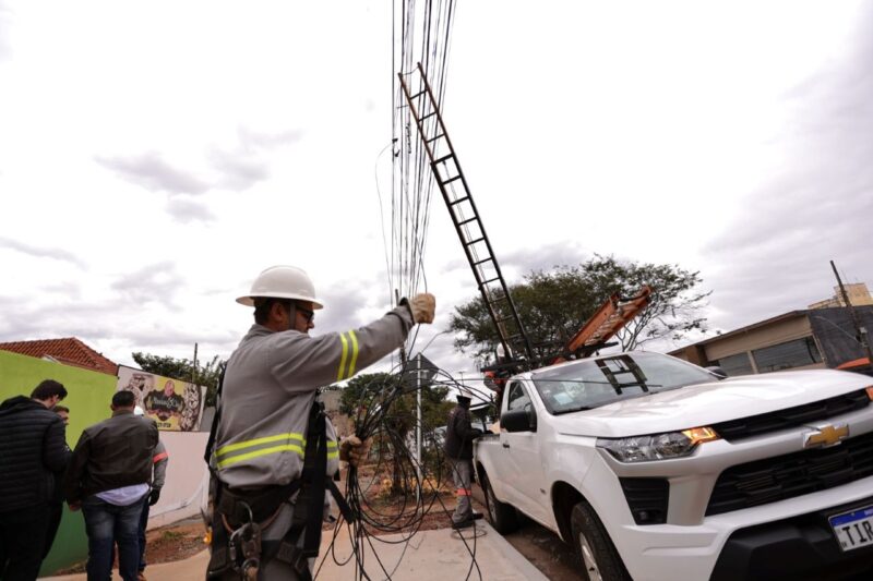 A Prefeitura de Dourados, por meio da Secretaria de Serviços Urbanos (Semsur), está intensificando esforços para remover fios de internet e telefonia considerados obsoletos nas calçadas e ruas da cidade. Na manhã desta terça-feira (01), o prefeito Marçal Filho esteve presente na Avenida Marcelino Pires, em um cruzamento com a Rua General Osório, para acompanhar o início das atividades da equipe técnica.